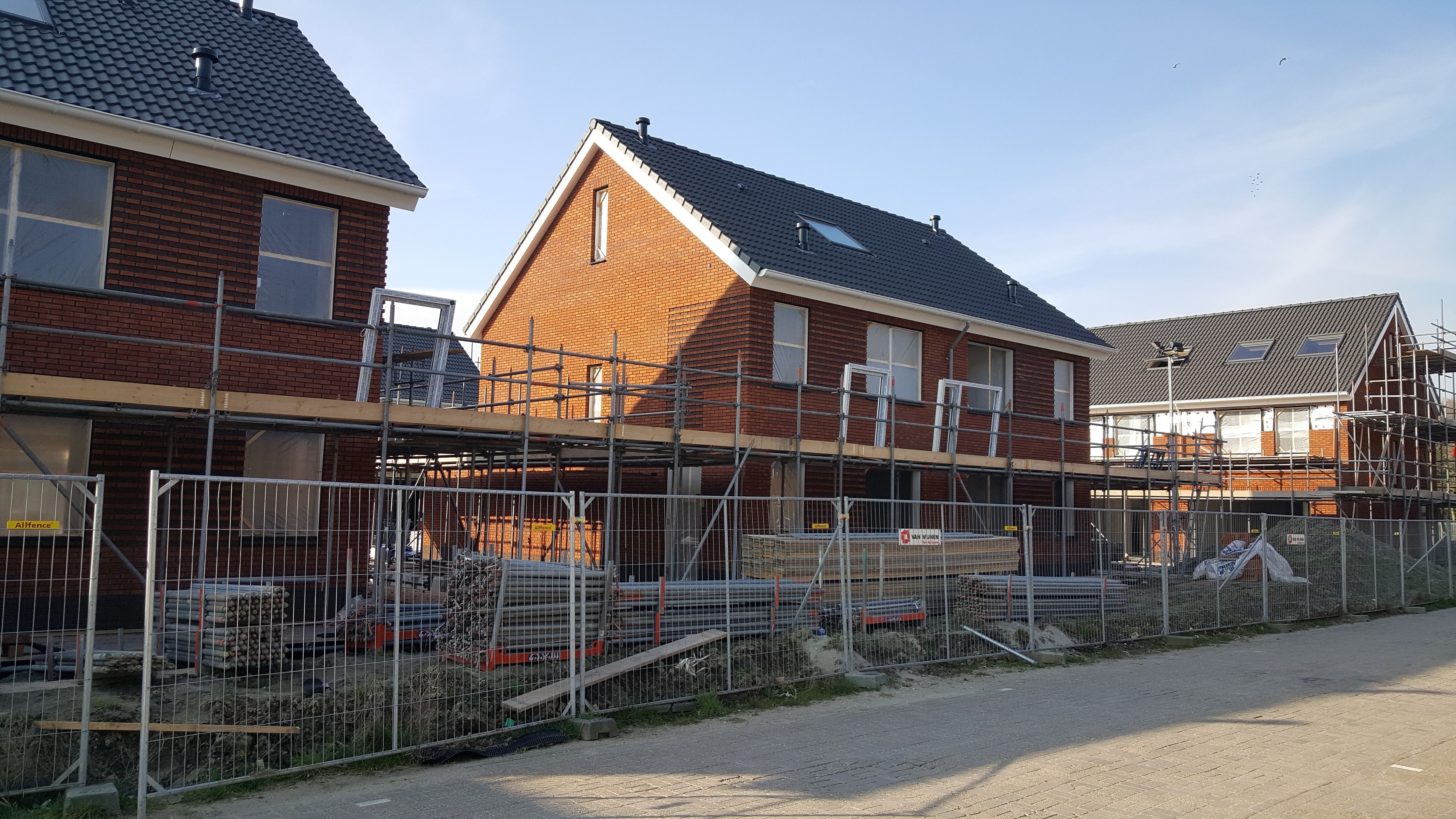 Project 36 woningen Hoogezand te Naaldwijk in volle gang. APR verricht op dit project metselwerk (pointmasteren) en levert de doorstrijkmortel.